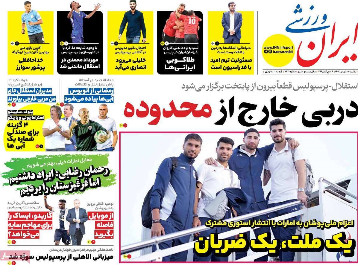 Gallery not found. 180932 ۱۸ شهریور ۱۴۰۳ ۶:۰۰ روزنامه های ورزشی 18 شهریور توسط مدیر ۱۸ شهریور ۱۴۰۳ ۶:۰۰ 81 اشتراک گذاری https://www.pgnews.ir/?p=180932کپی لینک کوتاه Gallery not found. 0 نظر همچنین ممکن است دوست داشته باشید بانک آینده یک تنه تورم را در کشور... ۱۸ آبان ۱۴۰۴ ۲۲:۳۹ شینا انصاری سکوتش را درباره سفر برزیل شکست ۱۸ آبان ۱۴۰۴ ۲۲:۳۸ برنامه استقلال برای جذب مامه تیام لو رفت ۱۸ آبان ۱۴۰۴ ۲۲:۳۶ مبلغ عیدی کارگران و کارمندان در ۱۴۰۵ افشا... ۱۸ آبان ۱۴۰۴ ۲۲:۳۴ مرگ سارق موبایل قاپ با شلیک پلیس ۱۸ آبان ۱۴۰۴ ۲۲:۲۵ رکورد مجردی در ایران شکسته شد! ۱۸ آبان ۱۴۰۴ ۲۲:۲۲ زویا امامی در کنار پسرش آرام میگیرد ۱۸ آبان ۱۴۰۴ ۲۲:۱۳ مدارس این شهرها تا آخر آبانماه تعطیل شد ۱۸ آبان ۱۴۰۴ ۲۲:۱۰ احساساتی شدن مونا کرمی در تولد پدرشوهرش+عکس ۱۸ آبان ۱۴۰۴ ۲۲:۰۸ عکس/ شمار میلیاردرهای سوپرماشینی ایران مشخص شد! ۱۸ آبان ۱۴۰۴ ۲۲:۰۴ پیام بگذارید لغو پاسخ نام ، ایمیل و وب سایت خود را برای بار دیگر که اظهار نظر می کنم در این مرورگر ذخیره کنید. Δ