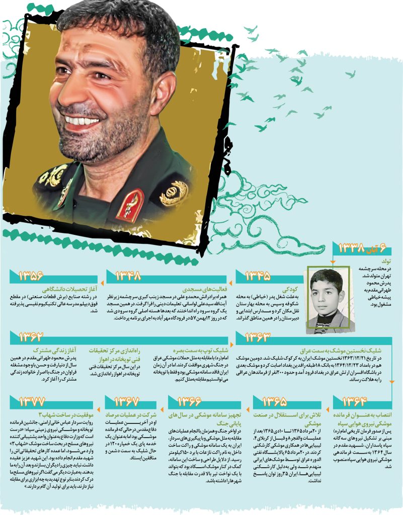 بعد از شهادت علی (برادرش) در سوسنگرد که از کودکی انس زیادی با هم داشتند، عزمش بیش از پیش جزم شد و با نبوغ بیحدش، کاری را شروع کرد که از ساخت خمپاره60 آغاز شد و تا موشک شهاب3 رسید؛ جوانی که در دانشگاه جنگ، فارغالتحصیل شد؛ از صدام تا سران صهیونیستی و آمریکایی برای سرش جایزه گذاشتند و شد کابوس بیپایان لشکریان شیطان و امیر لشکریان خدا.