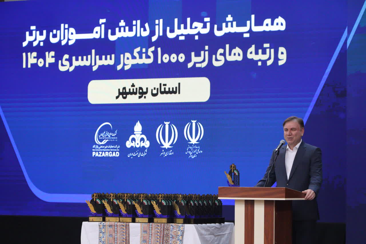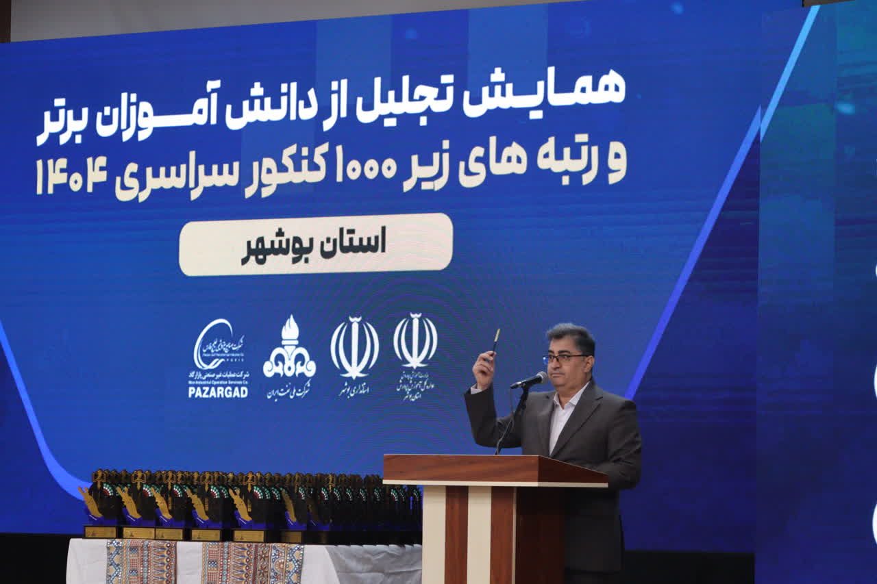 خلیج فارس: با ابتکار اداره کل آموزش و پرورش استان بوشهر و همت و همراهی شرکت عملیات غیرصنعتی پازارگاد، از دانش آموزان برتر و رتبه های زیر هزار کنکور سراسری در سالن لیان بوشهر تقدیر شد.به گزارش خلیج فارس، مدیرکل آموزش و پرورش استان بوشهر گفت: امروز نظام آموزش و پرورش استان خرسند است چرا که دانش آموزان آن خرسند هستند. خواندن و نوشتن زیبا است، خواندنی که بافهم همراه و مشارکتی باشد، خواندنی که آگاهی ذهنی ایجاد کند، خواندنی که به پرسیدن و بکار گرفتن آن منجر شود.