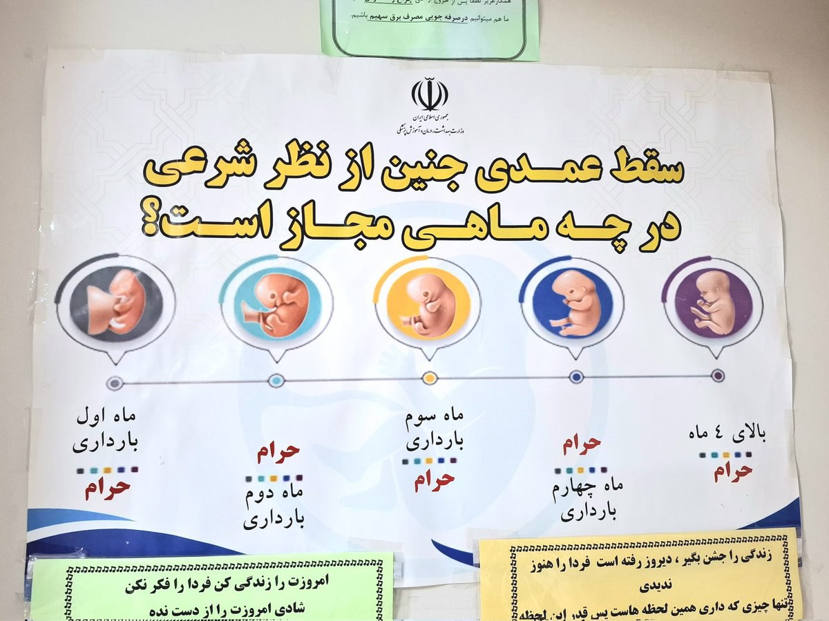 خلیج فارس:بنر نصب شده در یک مرکز بهداشت درباره حکم سقط عمدی جنین توجهبرانگیز شد.