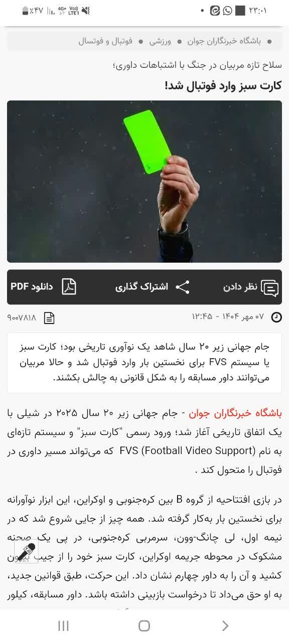سخن پایانی؛ ایدهی کارت سبز ورزشی نهتنها بهعنوان یک ابتکار در عرصه ورزش معرفی میشود، بلکه بهدنبال آن است که شور و انگیزه بیشتری را در میان ورزشکاران و هواداران ایجاد کند و تحولی در فرهنگ ورزش کشور بهوجود آورد.