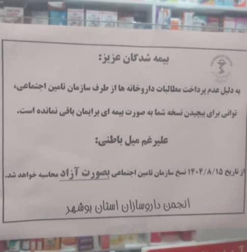خانه اخبار مهم بیمه تامین اجتماعی در داروخانه های بوشهر بی اعتبار شد + عکس