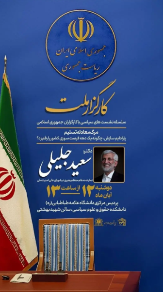 خلیج فارس:سعید جلیلی در اقدامی عجیب برای طراحی پوستر تبلیغ سخنرانی خودش، از شمایل تصاویر نشست خبری حسن روحانی در زمان ریاست جمهوری استفاده کرد و نشان داد که همچنان در آرزوی ریاستجمهوری به سر میبرد!