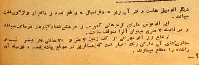 به گزارش«خلیج فارس» به نقل از اطلاعاتآنلاین؛اتو مهرانی در تهران در سال ۱۳۲۴ موفق شد یک اتاق دو طبقه برای اتوبوس شهری با هدف تردد در خیابانهای تهران بسازد. مجله اطلاعات هفتگی در شماره ۱۴۳ مورخ ۲۸ بهمن ۱۳۲۴ عکس جلد خود را به این اتوبوس دو طبقه اختصاص داده بود. عکسها را تماشا کنید و مشخصات فنیاش را بخوانید.