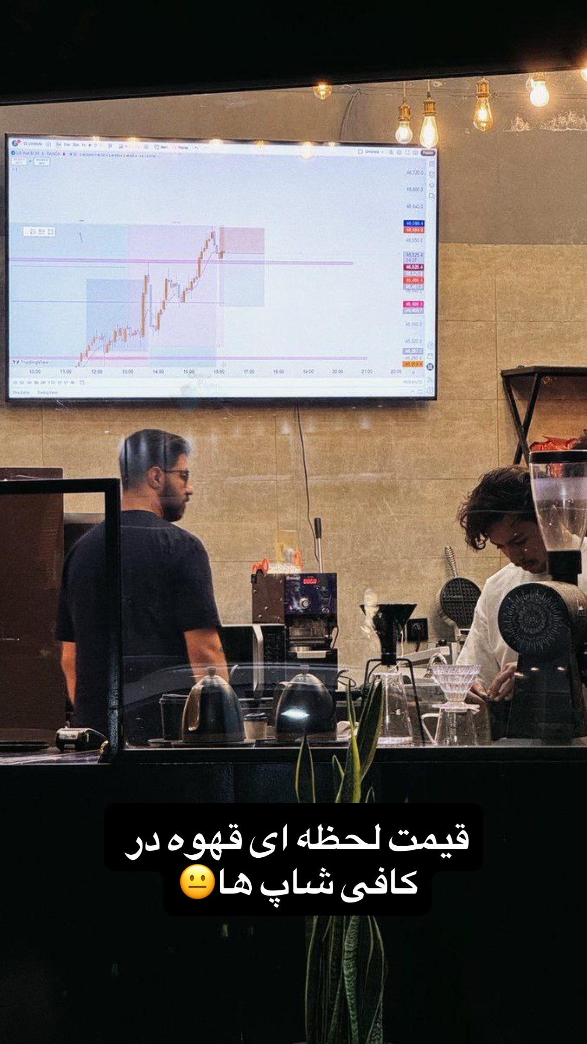 تصویر ناباورانه از تابلوی قیمت لحظهای قهوه در یک کافه
