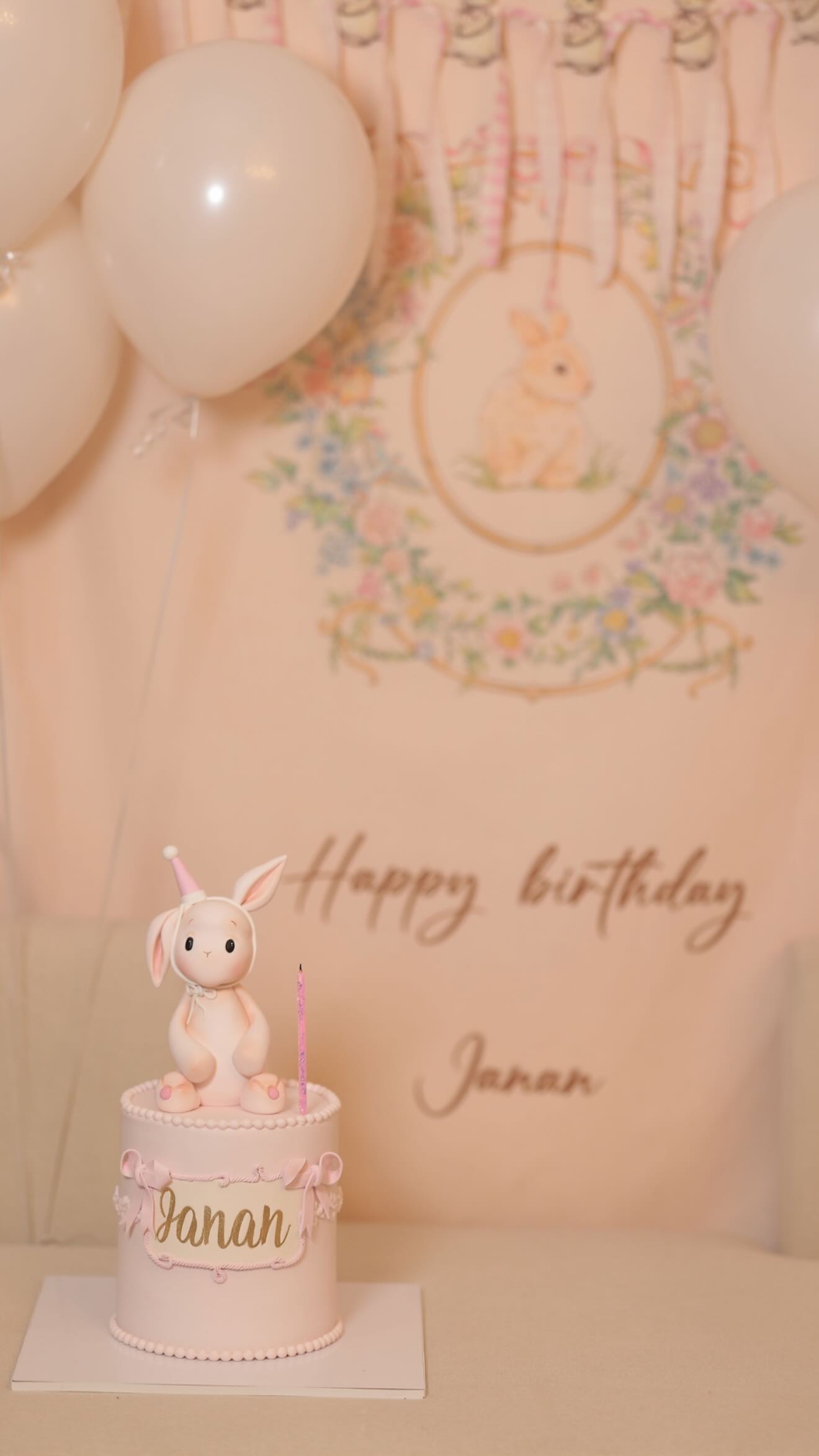 تم تولد جانان با رنگهای ملایم صورتی و استفاده از المانهایی مانند خرگوشهای فانتزی و گلهای بهاری تزیین شده بود؛ فضایی لطیف و شاد که حالوهوای کودکانه و دلنشینی را به تصویر میکشید. بسیاری از کاربران، سلیقه بهکاررفته در طراحی این جشن را تحسین کردهاند.