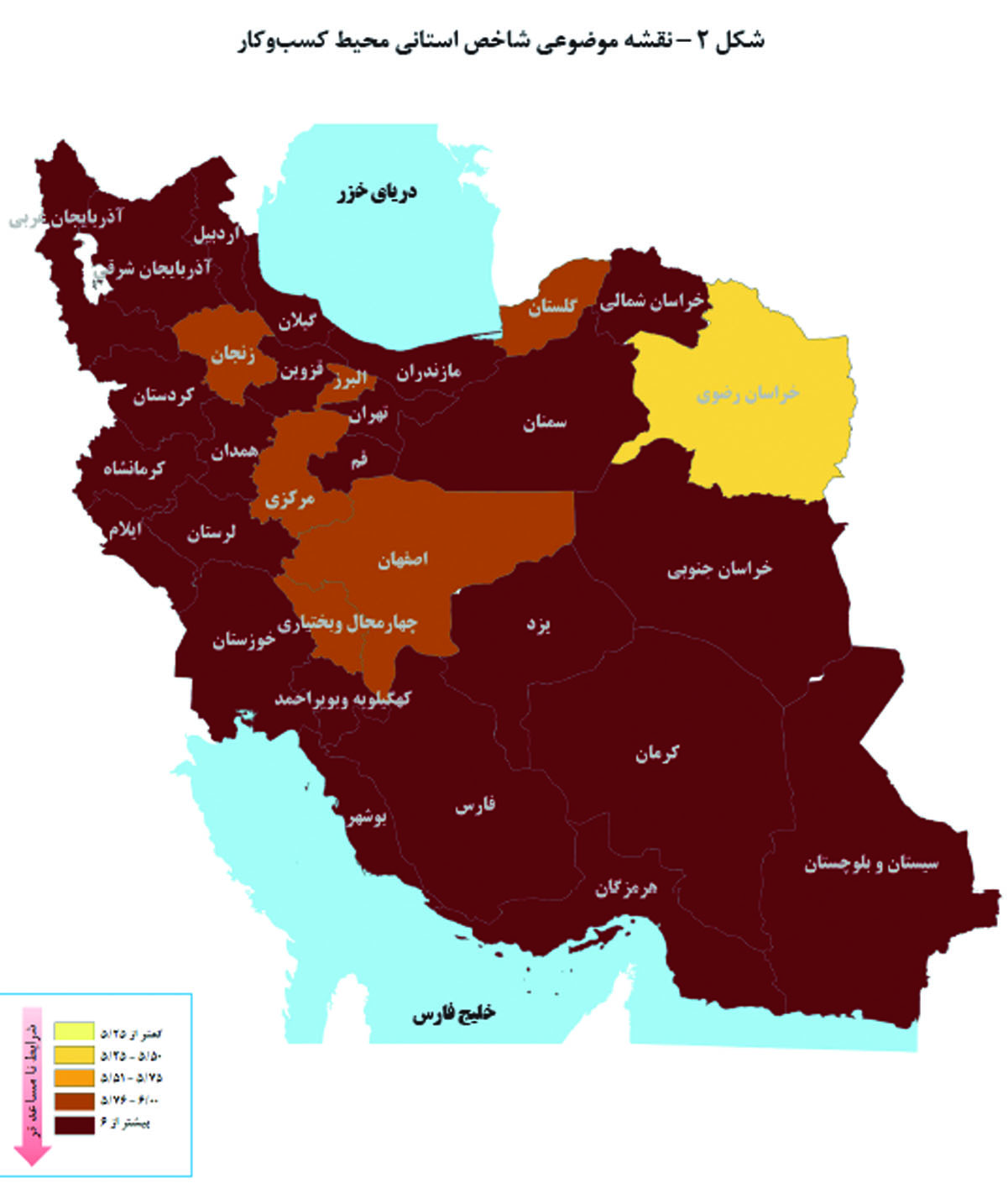 همچنین استان های فارس، سیستان و بلوچستان و سمنان دارای نامساعدترین شرایط برای کسب و کارها معرفی شده اند.