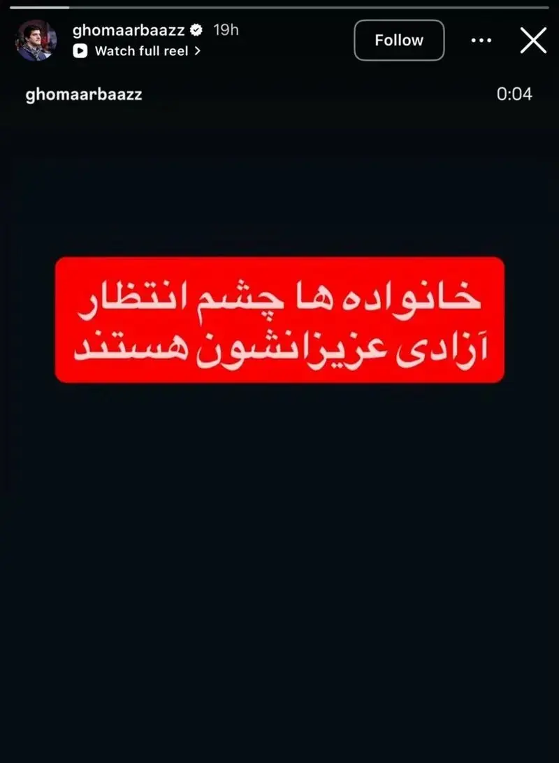 خادم که پیشتر خواستار آزادی ورزشکاران بازداشتی شده بود، این بار با انتشار یک استوری جدید نوشت: خانوادهها چشم انتظار آزادی عزیزانشون هستند.