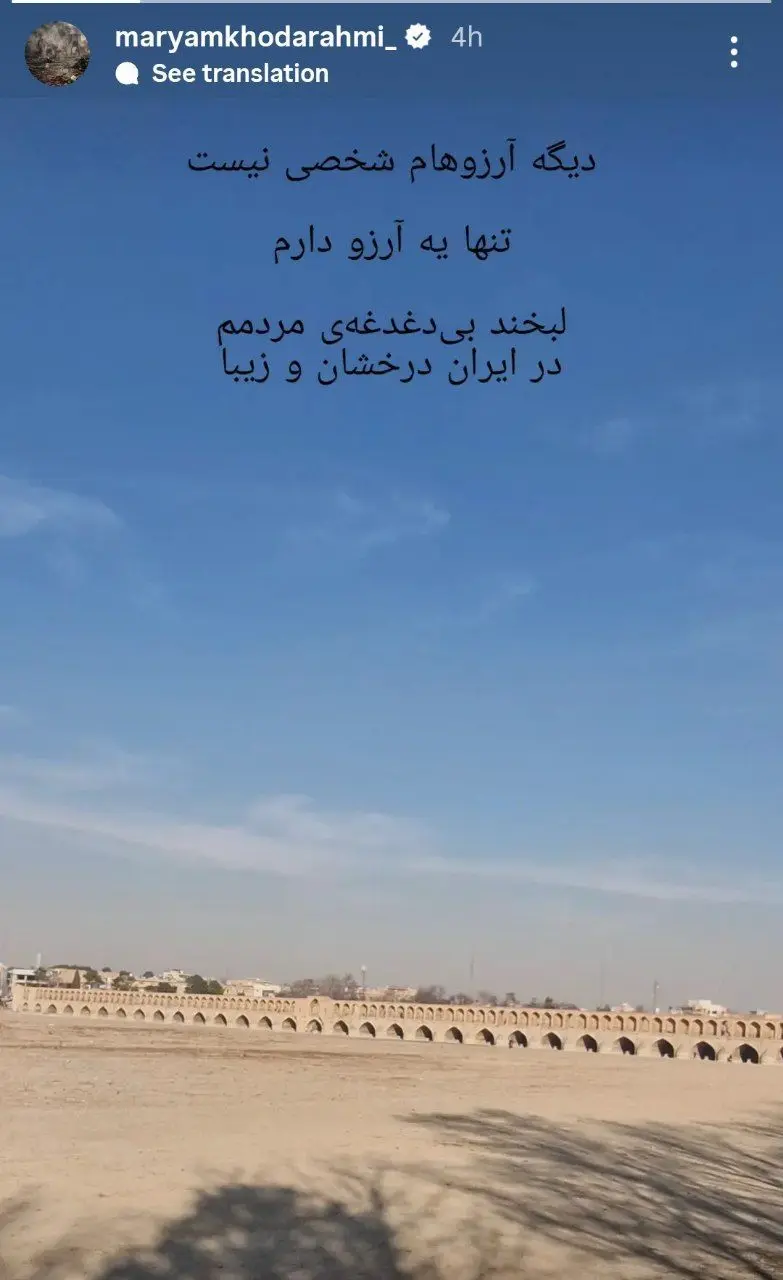 خلیج فارس:مریم خدارحمی استوری جدیدی منتشر کرد.