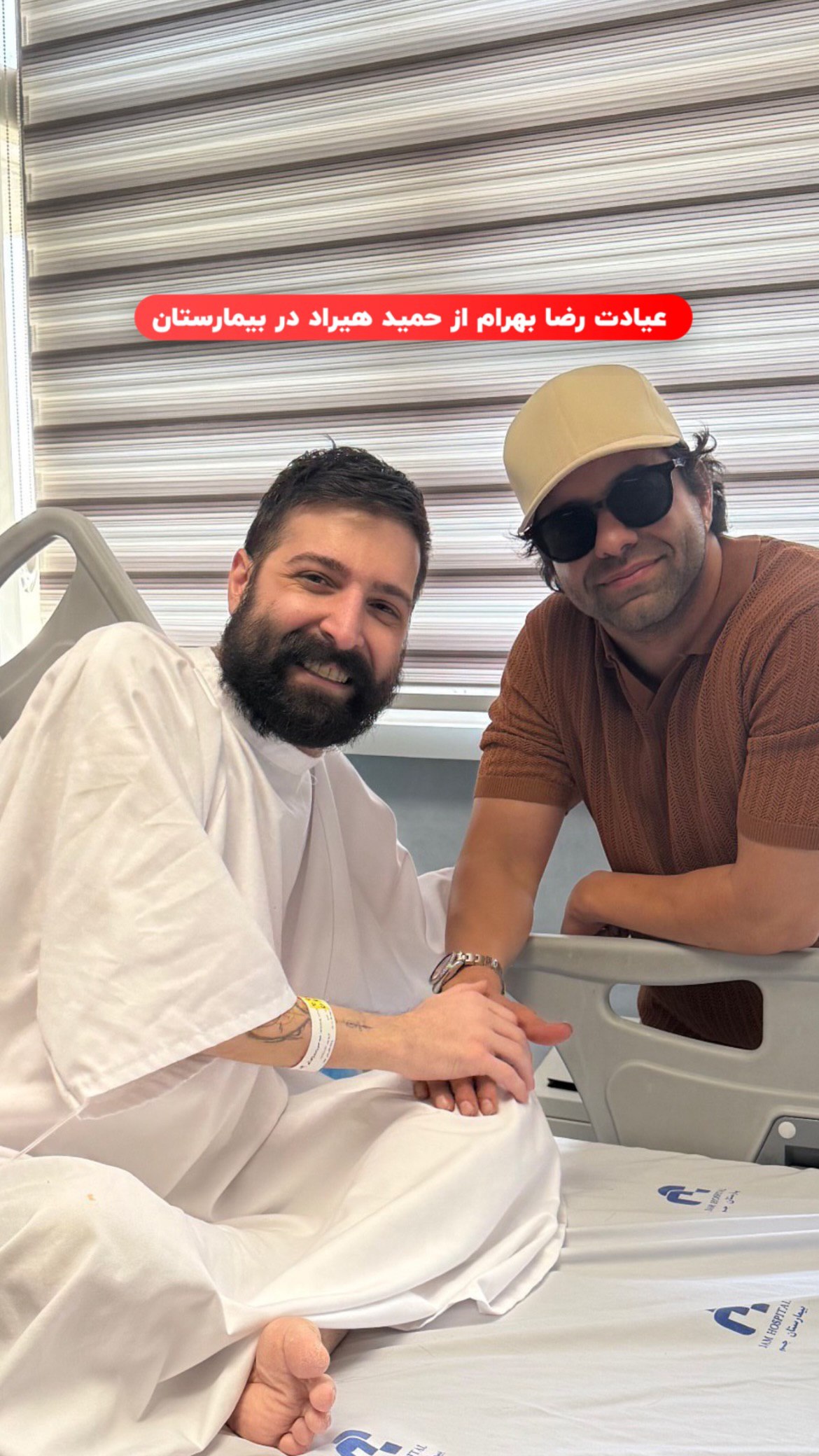 خلیج فارس:تصویری از عیادت رضا بهرام خواننده پاپ از حمید هیراد در بیمارستان منتشر شد.