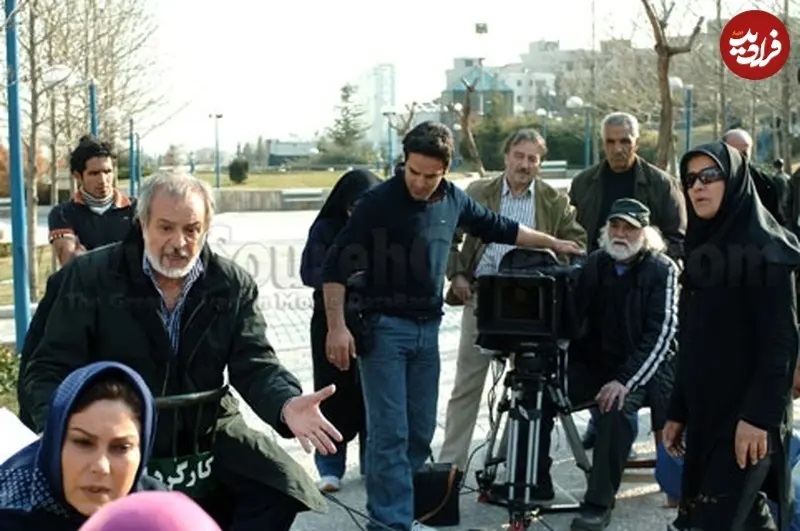 عکس/ «مهرانه مهین ترابی» در کنار «ایرج قادری» در پشتصحنه یک فیلم؛ سال ۸۷