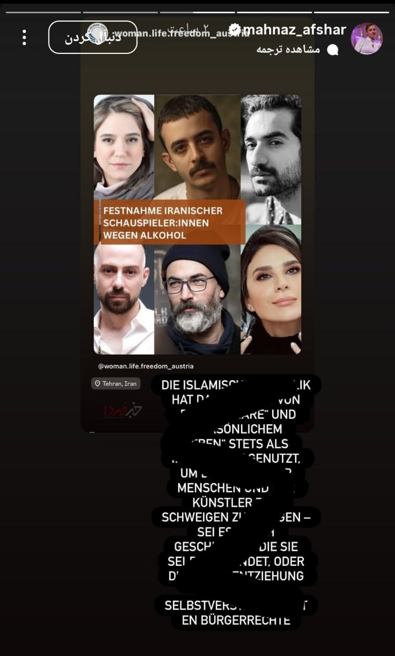 عکس/ مهناز افشار اسامی بازداشتیهای میهمانی بازیگران را منتشر کرد