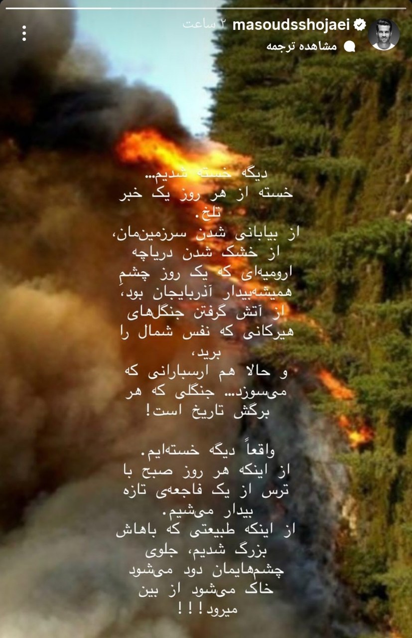 عکس/واکنش مسعود شجاعی به اتفاقات تلخی که هر روز در ایران میافتد