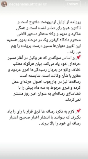 به گزارش«خلیج فارس» به نقل از فرارو؛ بعد از مصاحبه کامبیز برجاس وکیل پژمان جمشیدی، ندا شمس وکیل شاکی پرونده در فضای مجازی به این صحبتها واکنش نشان داد، او در این متن منتشر شده نوشته: «تاکنون هیچ رایی صادر نشده و همه منتظر دستور قاضی دادگاه کیفری هستیم.»