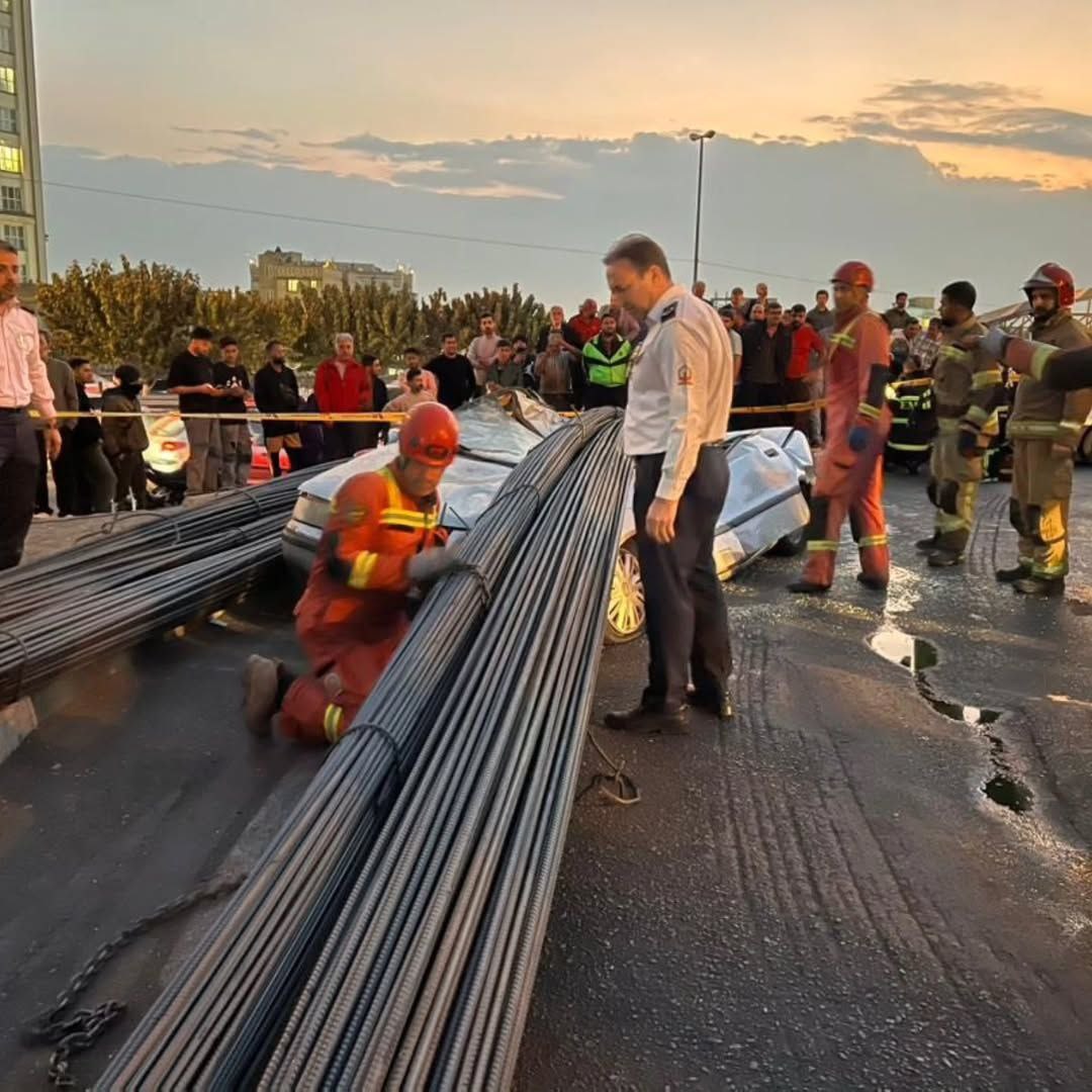 سخنگوی آتشنشانی تهران گفت: آتشنشانان بلافاصله عملیات نجات را آغاز کردند. با استفاده از جرثقیل آتشنشانی میلگردها جابهجا شد و با برش قطعات خودرو، فرد محبوس شده از داخل کابین خارج و تحویل عوامل اورژانس شد. این فرد دچار مصدومیت شدید بود که توسط اورژانس به سرعت به مراکز درمانی منتقل شد.