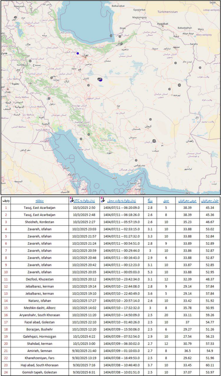خلیج فارس:علی بیتالهی، متخصص زلزلهشناسی، اعلام کرد که در سه روز گذشته ۲۵ زلزله با بزرگای بالای ۲.۵ در گستره ایران زمین رخ داده است
