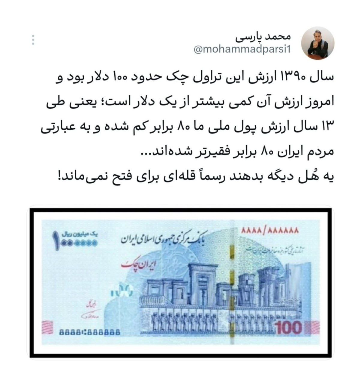 به گزارش«خلیج فارس» به نقل از خبر فوری؛ عضو کمیسیون اقتصادی مجلس هشدار داد: دولت ورود نکند دلار به ۱۰۰ هزار تومان هم میرسد! روحالله ایزدخواه اظهار داشت: ما از ابتدا هشدار داده بودیم که آزادسازی نرخ ارز اثرات مخربی دارد. اکنون مشاهده میکنیم که علاوه بر افزایش شکاف میان نرخهای رسمی و غیررسمی، قیمت ارز نیز در حال پرواز است.