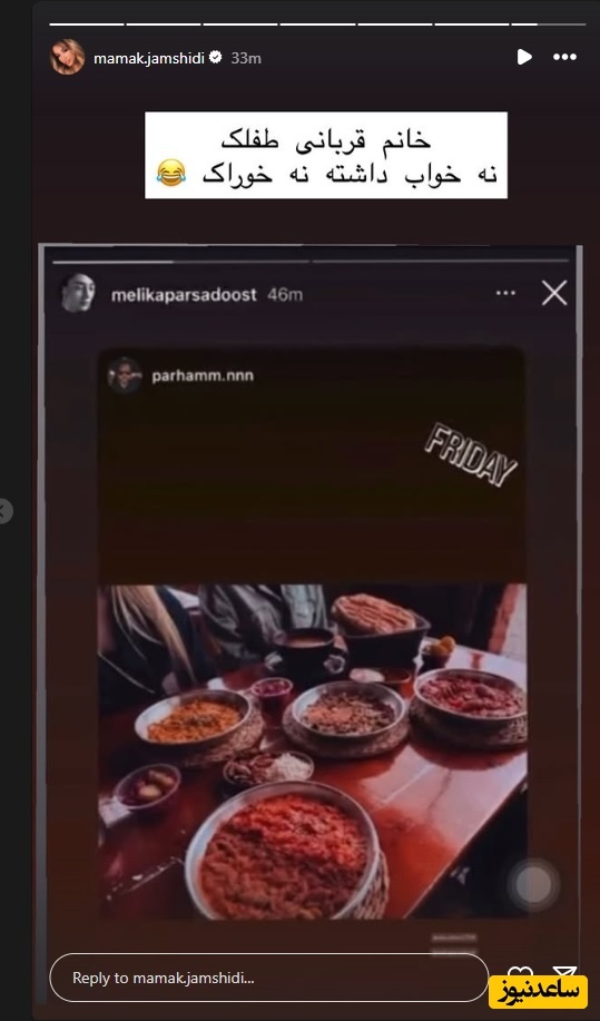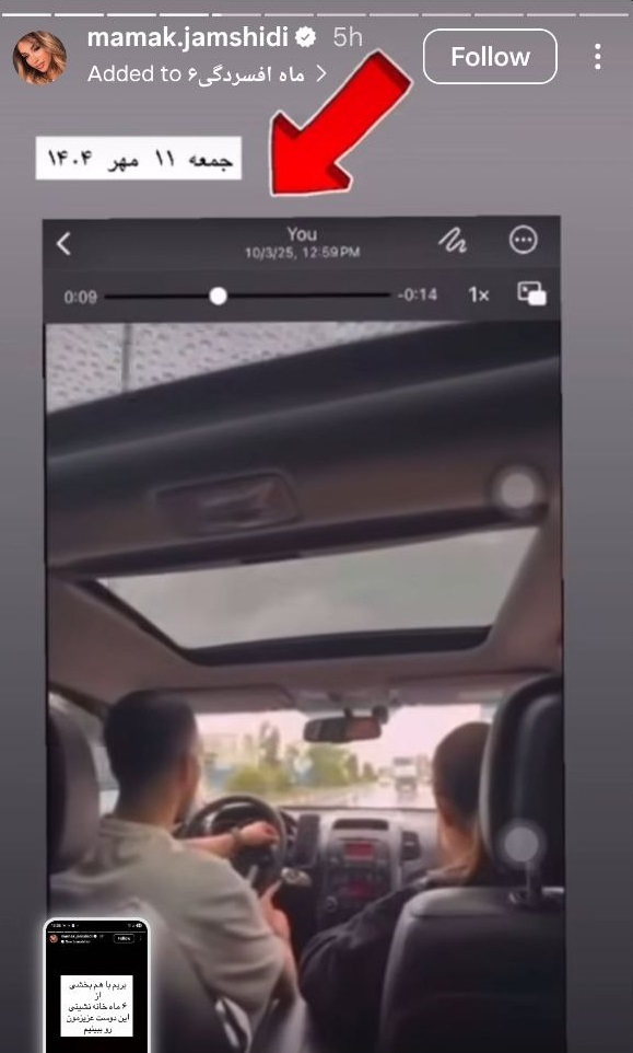 به گزارش«خلیج فارس» به نقل از برترینها؛مامک جمشیدی، خواهر پژمان جمشیدی با بازنشر پیام یکی از مخاطبان صفحه اش در واکنش به این پرسش که «آیا پژمان به ایران برخواهد گشت؟» نوشت: «تا چند روز دیگه پژمان برمیگرده ایران و قوی تر از قبل کنارتونه»