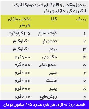 خلیج فارس:دولت در طرح کالابرگ جدید مبلغ یک میلیون تومان به ازای هر نفر به حساب سرپرستان خانوار واریز کرده است.